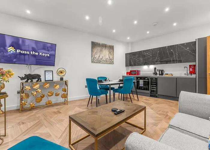El Large Apartment By Spinningfields - Manchester - Pass The Keys está situado a una distancia de 2 km de la estación de tren Deansgate y a poco más de 5 minutos a pie del Puente Blackfriars. Los huéspedes pueden disfrutar del Wi-Fi.